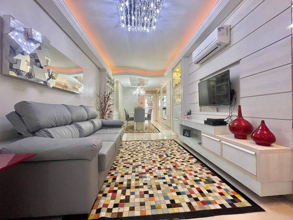 APARTAMENTO FINAMENTE MOBILIADO E DECORADO NO CENTRO DA CIDADE! Excelente apartamento composto por 03 dormitórios (01 suíte) + 01 dependência de empregada, finamente mobiliado e decorado, 01 vaga de garagem de fácil acesso, área de serviço separada, living amplo com 02 ambientes, teto rebaixado em gesso, split instalado em todas as peças, churrasqueira com calefação, piso 100% em porcelanato, cozinha totalmente equipada com eletrodomésticos, ventilação direta em todo apartamento, sacada fechada de frente e PRONTO PARA VOCÊ MORAR. Prédio está 100% revestido em pastilhas, possui zeladoria anual permanente, porteiro eletrônico, hall de entrada decorado, hidrômetro individual, gás central e elevador digital. TUDO ISSO A APENAS 01 QUADRA DO MAR. Não perca tempo, agende a sua visita e faça a sua proposta!