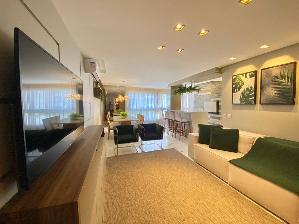 Excelente apartamento luxuoso composto por 03 dormitórios (03 suítes), finamente mobiliado e decorado, vaga de garagem dupla, área de serviço separada, living amplo com 02 ambientes, teto rebaixado em gesso, split instalado em todas as peças, cozinha totalmente equipada, sacada fechada de frente com churrasqueira, vista para o mar e serra, ventilação direta em todo apartamento, 100% revestido em porcelanato, vidro duplo com acústica perfeita. Prédio está 100% revestido em pastilhas, possui zeladoria anual permanente, porteiro eletrônico, hall de entrada decorado, hidrômetro individual, gás central, salão de festas e 02 elevadores digitais. Não perca tempo, agende a sua visita e faça a sua proposta!
