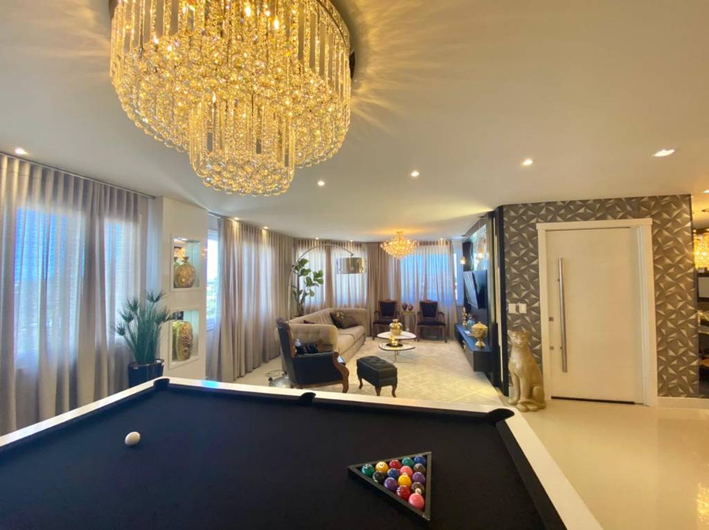 APARTAMENTO NA REGIÃO MAIS PROCURADA DA CIDADE! Excelente apartamento composto por 05 suítes independentes sendo 01 delas com banheira, finamente mobiliado e decorado, 01 vaga de garagem dupla + 01 depósito individual, área de serviço separada, living amplo com 02 ambientes, sacada fechada de frente, 100% em porcelanato, split instalado em todas as peças, mesa de sinuca, apartamento decorado por arquiteta, terraço simplesmente GIGANTESCO com grama sintética, área gourmet na parte de fora com churrasqueira e deck, hidromassagem para 04 pessoas, ventilação direta em todo apartamento e VISTA ETERNA PARA O MAR. Prédio está 100% revestido em pastilhas, possui zeladoria anual permanente, porteiro eletrônico, hall de entrada decorado, hidrômetro individual, gás central, 01 elevador digital com vista panorâmica para o mar e baixo valor condominial, tudo isso a apenas 02 quadras do mar. Não perca tempo, agende a sua visita e faça a sua proposta!